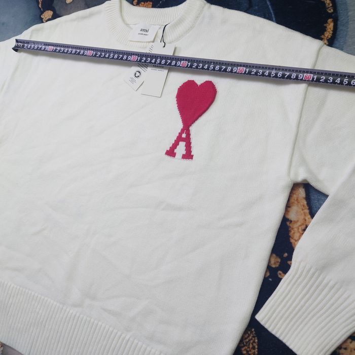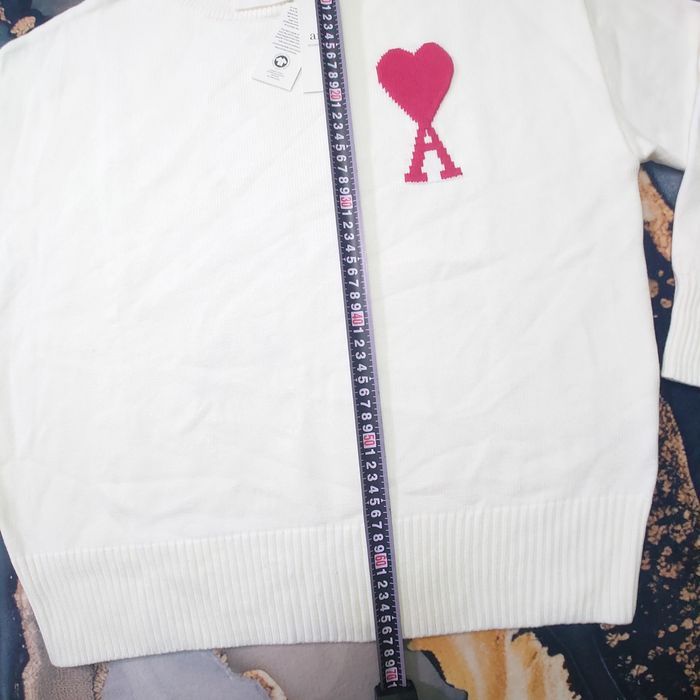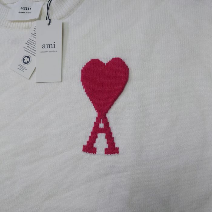 Pull AMI Alexandre Mattiussi Homme Blanc Cœur Rouge Taille L - photo numéro 7