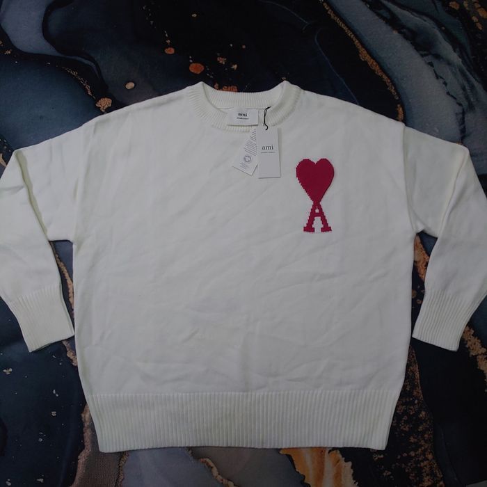 Pull AMI Alexandre Mattiussi Homme Blanc Cœur Rouge Taille L - photo numéro 1