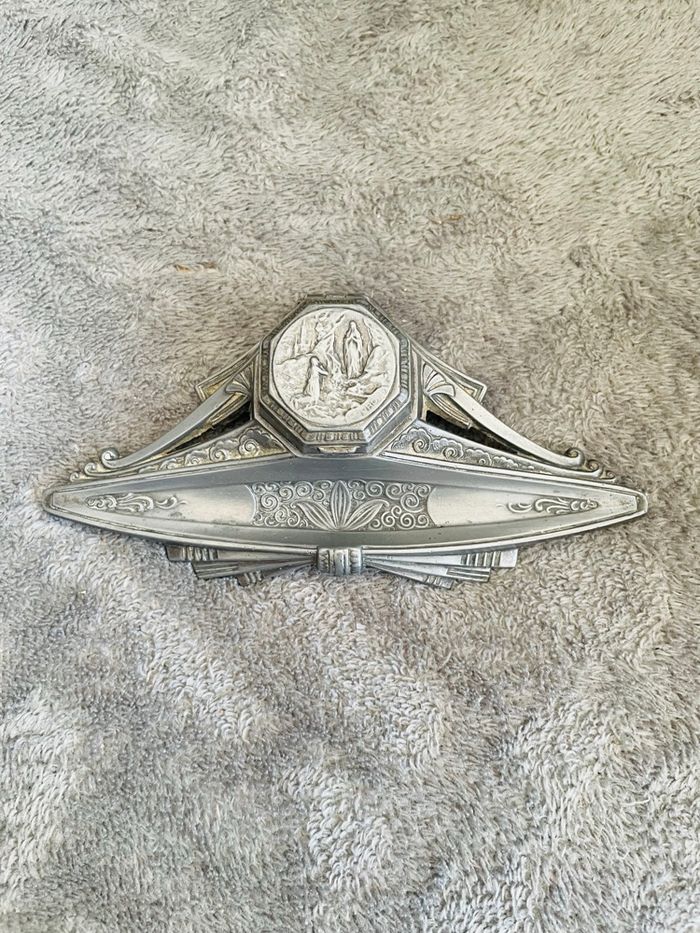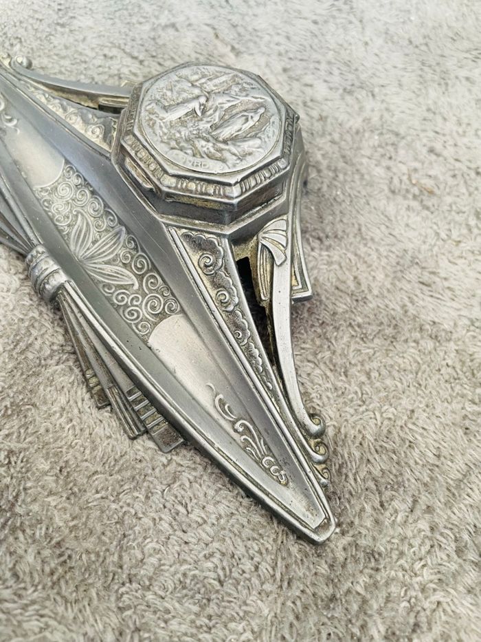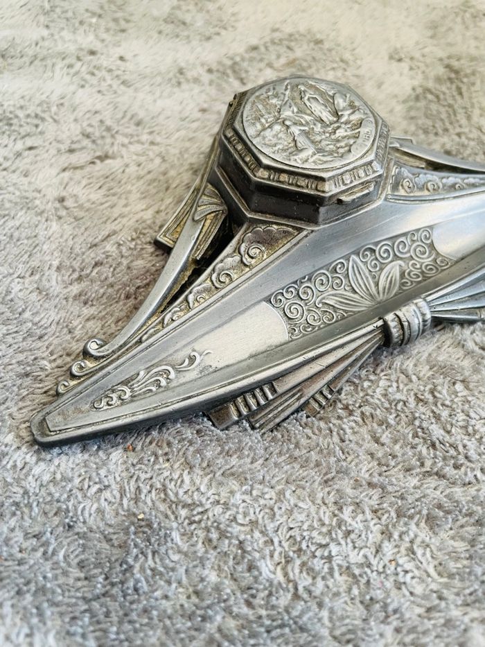 Encrier Paris Orfear ancien Acheté à Lourdes par mon grand père dans les 20’s Encrier en métal blanc et contenant en verre d’origine (non cassé) Permet d’y poser une plume Porté quelques marques de son grand âge Dimensions : 7x14cm #stefetjuju51divers maison non fumeurs bien d’autres choses dans mon dressing de nouveaux articles très régulièrement nombreux # dans mon profil pour faciliter vos recherches merci pour votre visite et belle journée ☺️ #encrier #ancien #collection #lourdes paris #orfear