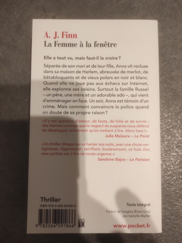 La Femme à la fenêtre A.J. Finn Pocket Thriller 2019 - photo numéro 4