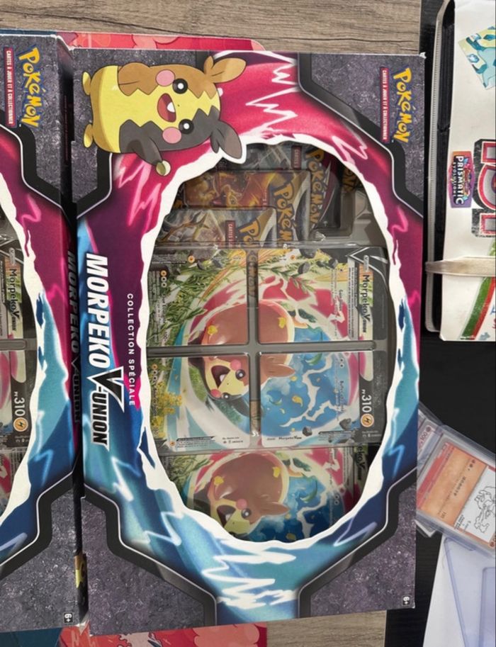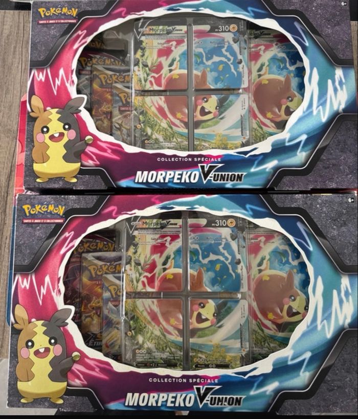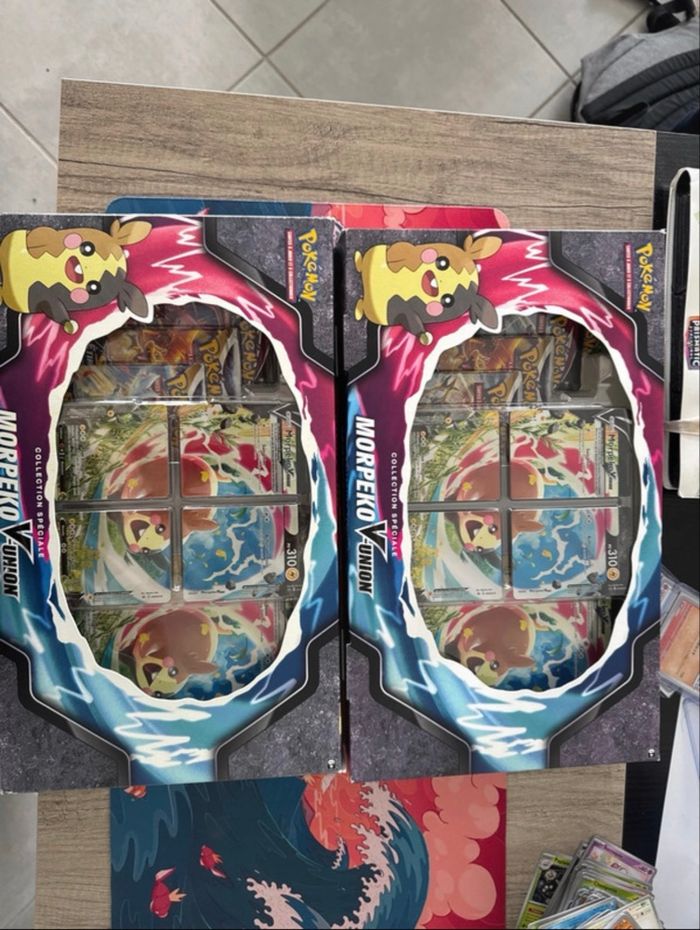 Bonjour Je vends ces 2 coffrets Pokémon Morpeko (4 boosters à l intérieur + 5 grandes cartes) 70€/unite Pour plus de demande n hésitez pas a envoyé un message