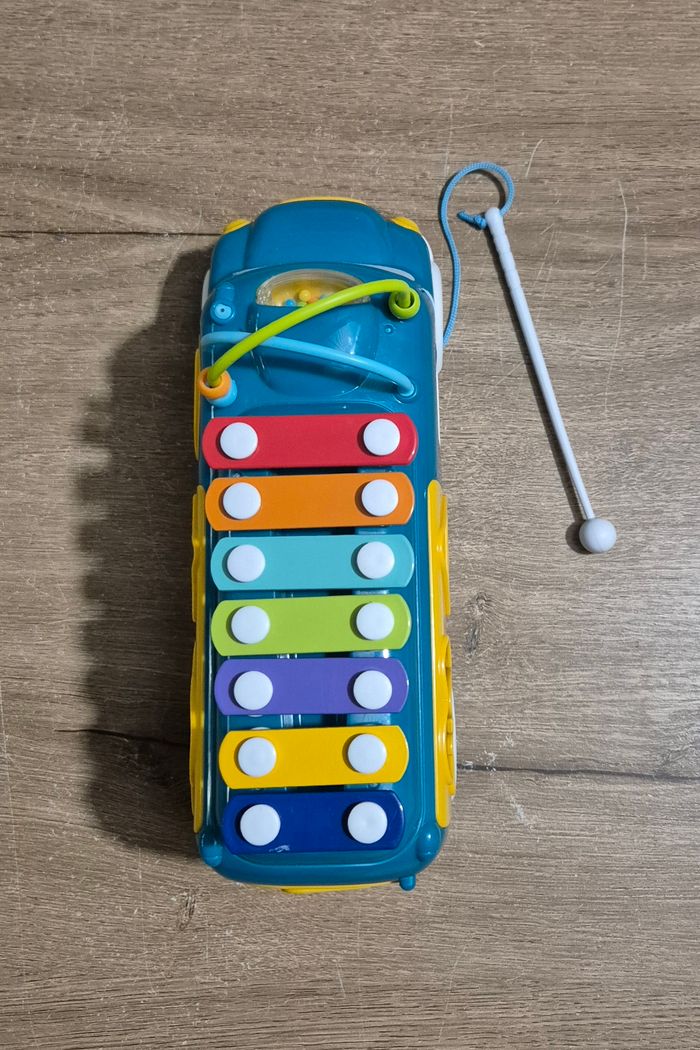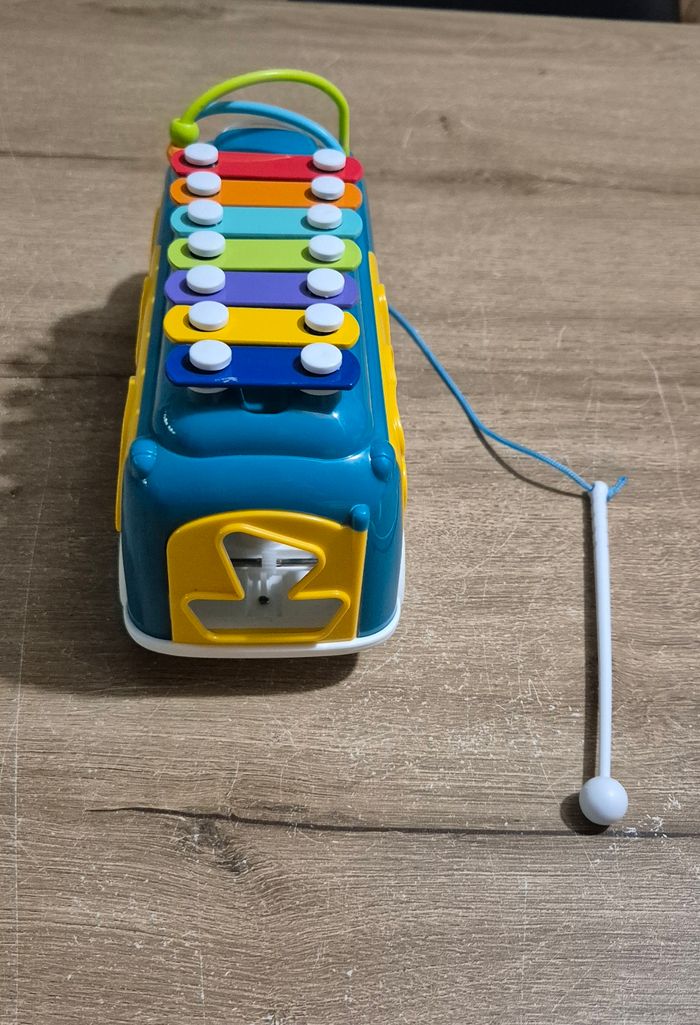 Bus d'activités à tirer Xylophone, formes à encastrer (manque la forme voiture), perles à déplacer... Très bon état