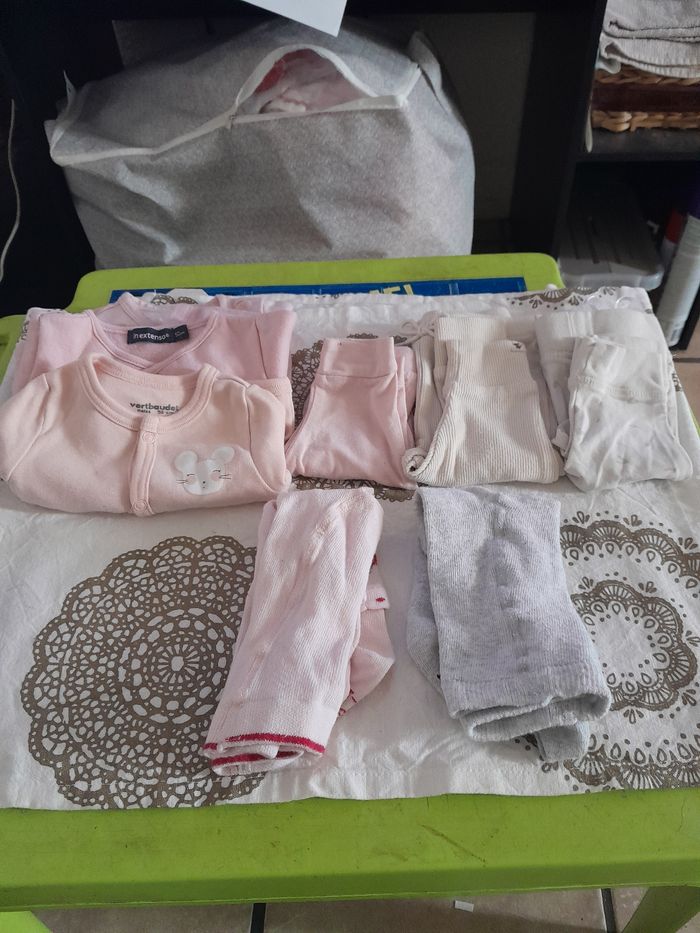 Lot de vêtements pour bébé fille naissance 44cm 1 pyjama-1 veste -2 brassière bébé 8 body- 3 leggings- 1 gilet 2 collant 1 p de moufle 2 paire de chaussettes divers marque
