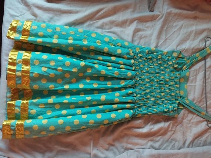 Pour un look pin up flashy, cette jolie robe sera parfaite De couleur bleu/vert et jaune Ceinture élastique a la poitrine pour la passer