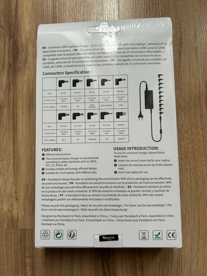 Chargeur de PC Universel 120W Neuf Panda Tech