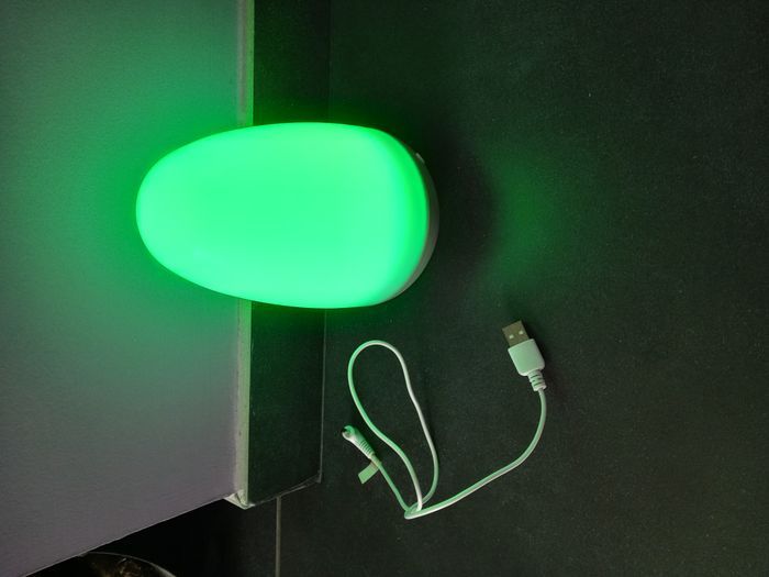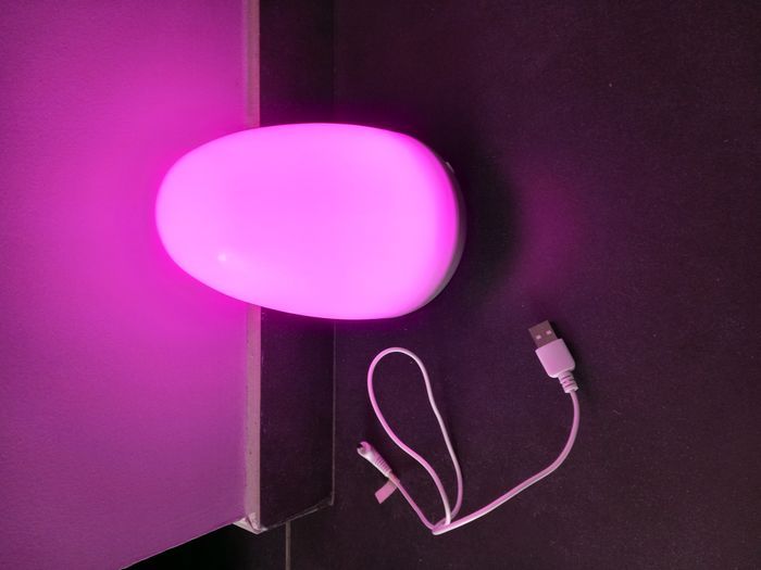 Lampe oeuf multi-couleurs veilleuse multicolore une 10e de couleurs différentes Les couleurs défilent ou on peut figer une couleur Hauteur : environ 18 cm Avec son câble de rechargement USB