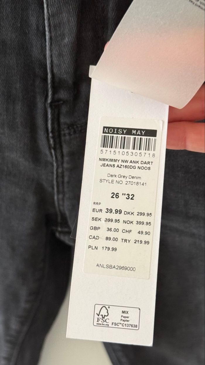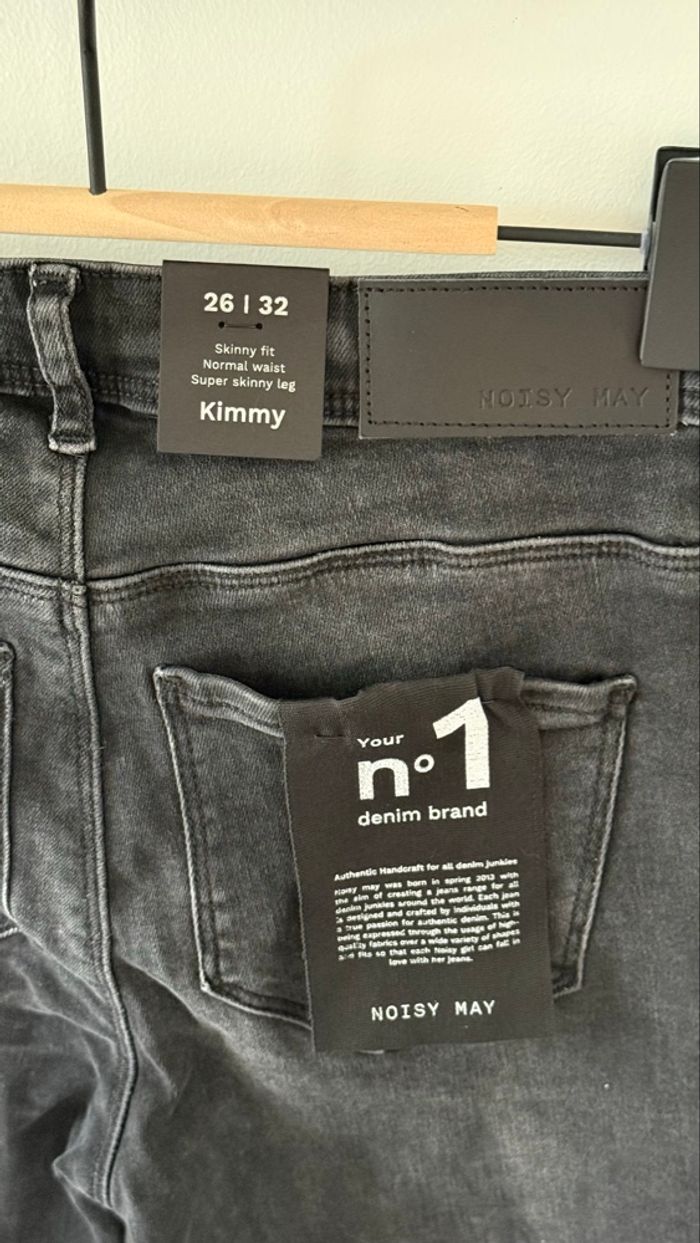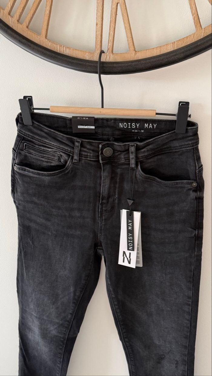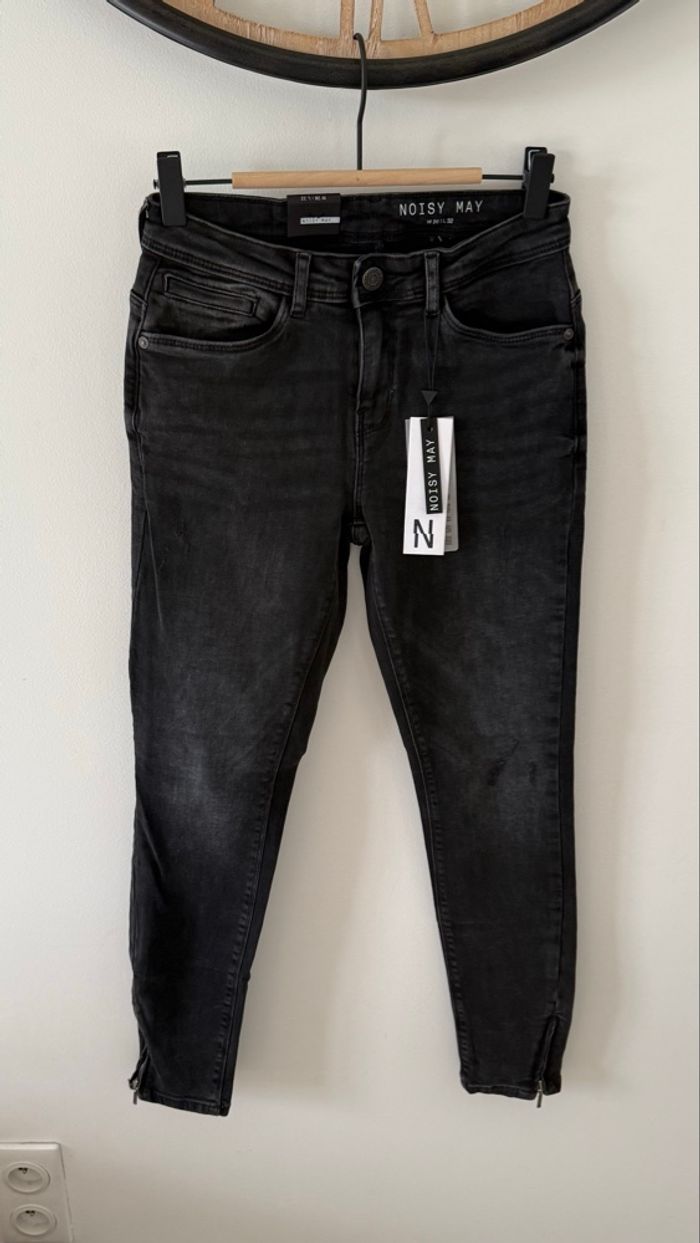Jean skinny marque Noisy May Taille S = W26 L32 Couleur gris foncé presque noir Détails fermeture éclair aux chevilles Neuf avec étiquette