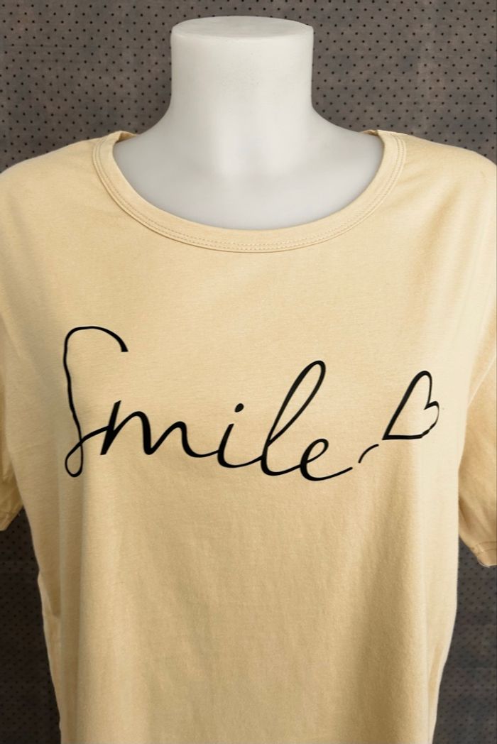 Joli t-shirt décontracté à manches courtes pour femmes, t-shirt automne pour femmes s'associe facilement avec d'autres. Par exemple: short, pantalon long, jean, robe, legging, chaussures blanches, bottes, etc. Un t-shirt aussi beau et gracieux vous rendra plus à la mode et attrayant. T-shirt classique à col rond, chemises à manches courtes. Le t-shirt graphique imprimé pour femme est simple mais énergique, montrez votre charme. T-shirts basiques avec une décoration d'impression de smile avec un cour sur le devant, vous allez l'adorer. Mesures à plat : Poitrine :58cm • Longueur totale (prise depuis le col au dos jusqu'en bas) : 67cm