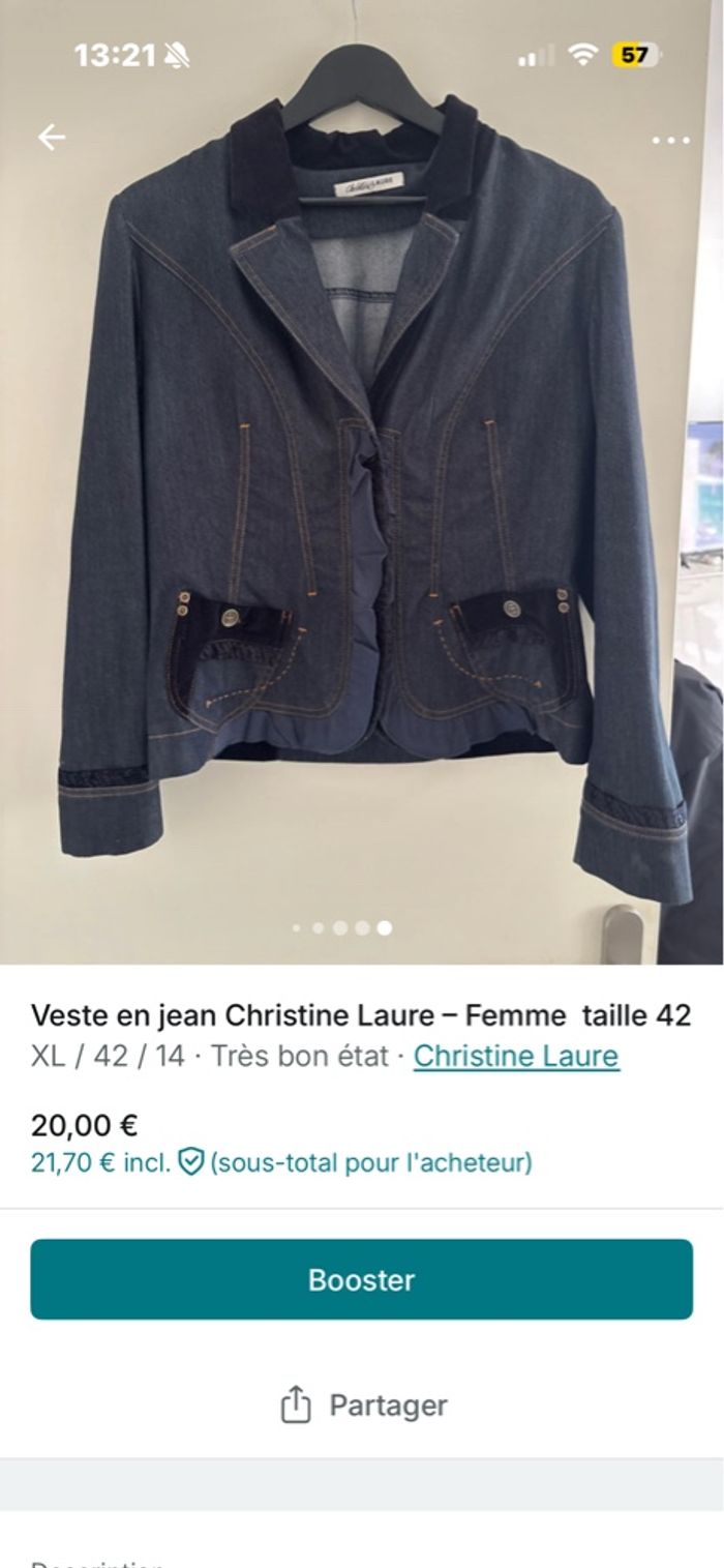 Veste en jean Christine Laure - Femme taille 42 XL / 42 / 14 • Très bon état • Christine Laure - photo numéro 1