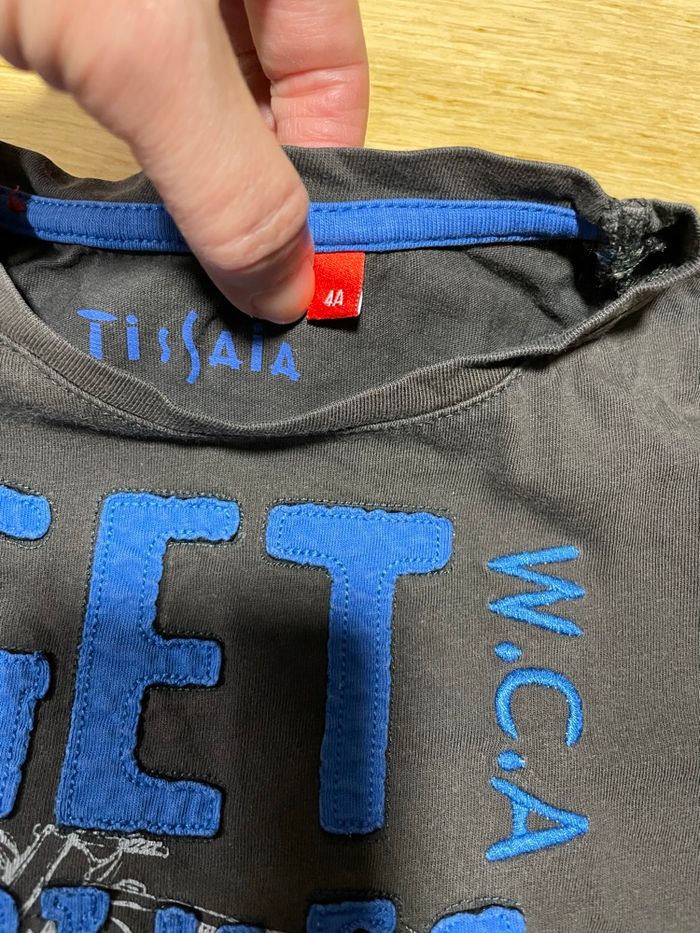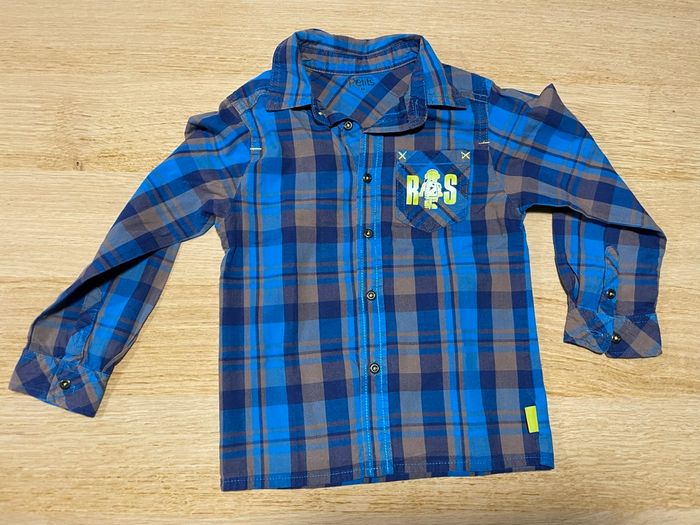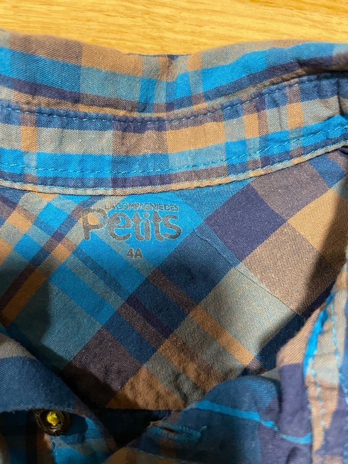 Ensemble garçon 3 pièces, composé de : - une chemise à carreaux manches longues (marque La Compagnie des Petits) - un t-shirt manches longues (Tissaia) - un jean beige/kaki (marque Vertbaudet), taille resserrable par boutons ⚠️ pantalon rapiécé aux genoux (voir photos) Taille 4 ans