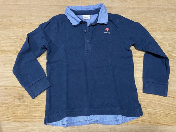 Ensemble garçon 3 pièces, composé de : - un polo manches longues (marque Tape à l’œil) - un sweat capuche (marque La Redoute) - un jean bordeaux (marque Tape à l’œil), taille resserrable par boutons Taille 4 ans