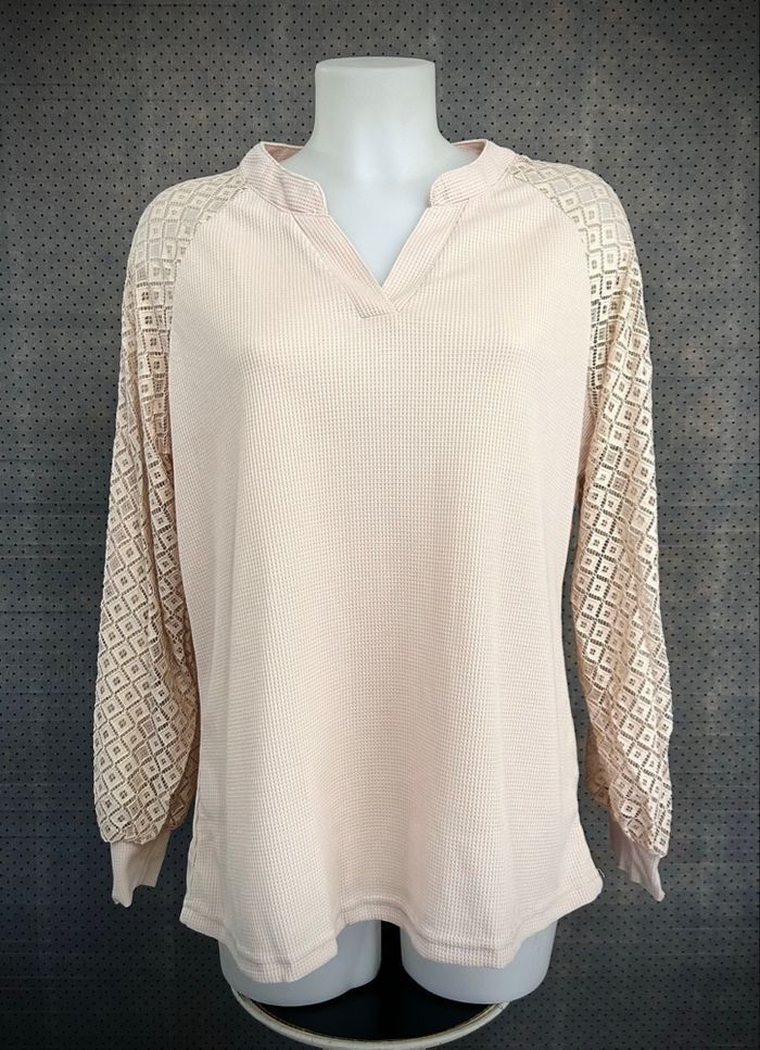 Blouse à manches longues tan tomi belge. Taille M. 65% viscose 35% polyester