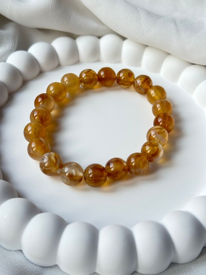 Bracelet perles ambrées miel – Élastique & Élégant - photo numéro 1