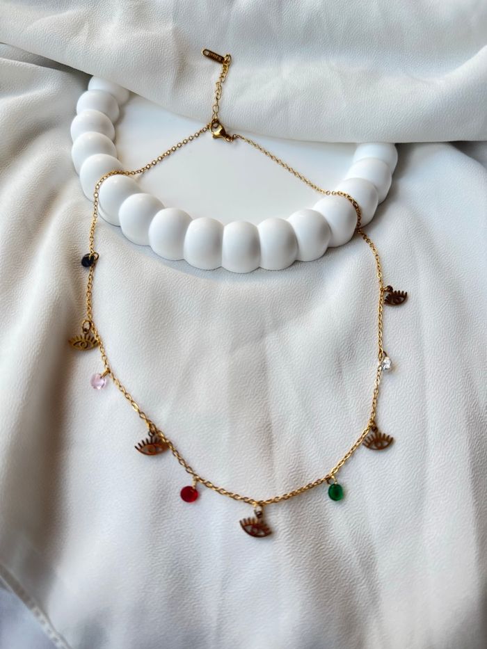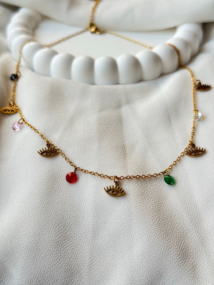 Collier "Regard Mystique" – Acier Inoxydable & Charm's Colorés - photo numéro 2