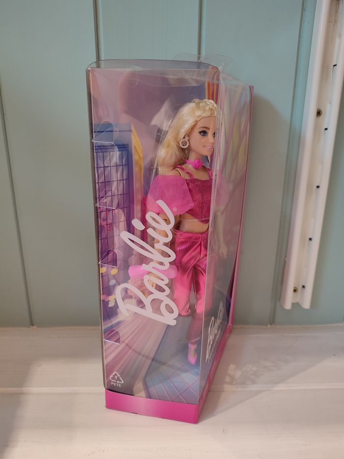 Barbie poupée deluxe style avec tenue rose métallisé et cheveux blonds