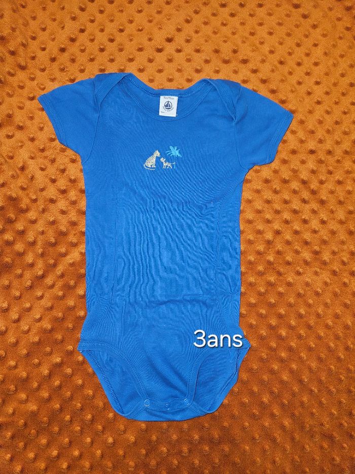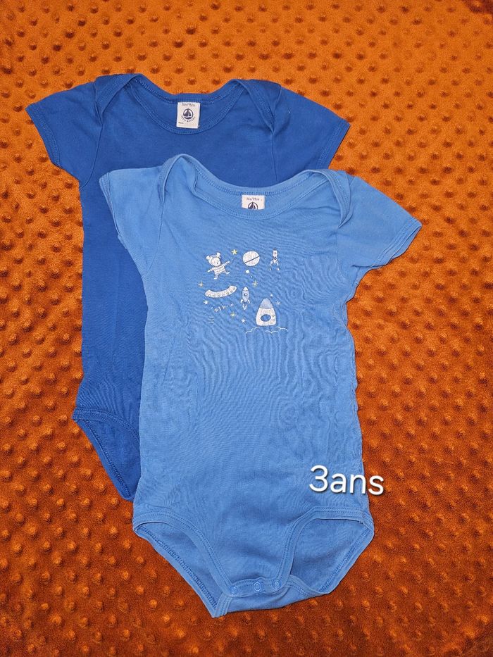 Lot de 2 bodies manches courtes ( MC ) petit bateau taille 36mois (95 cm). Bon état, la couleur est un partie sur la pression (voir 3e photo), sans trou ni tâche D'autres vêtements sont disponibles dans mon dressing en taille 3ans