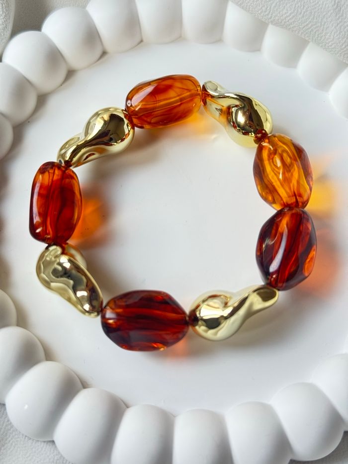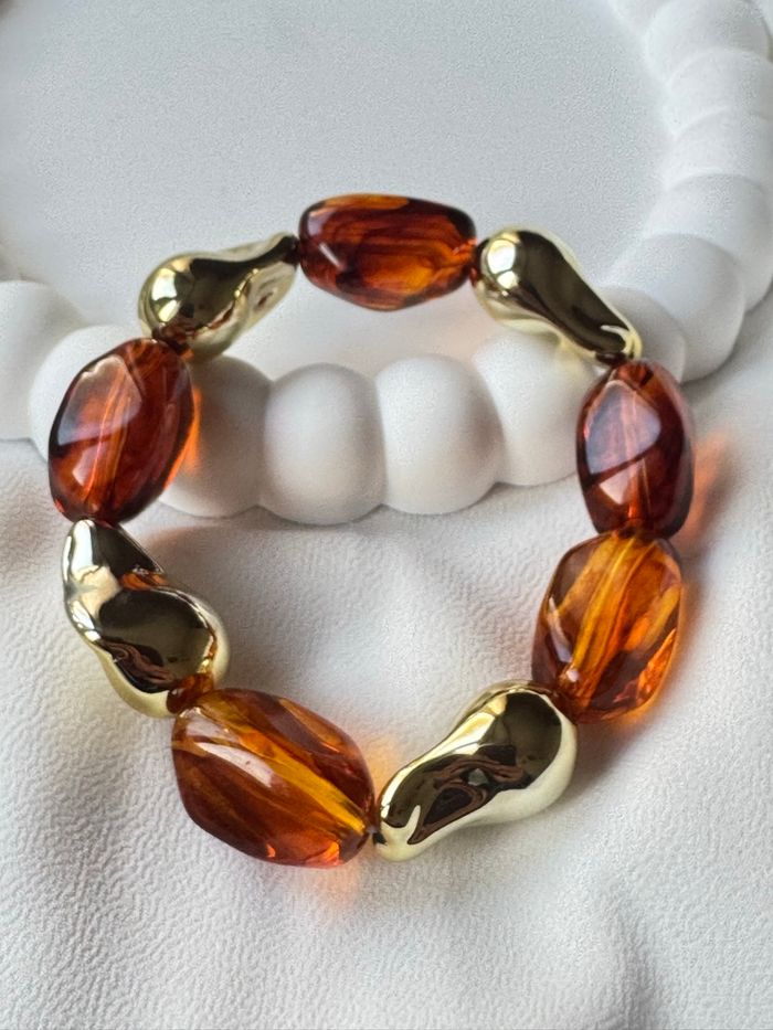Bracelet élastique perles ambrées et dorées - État Impeccable