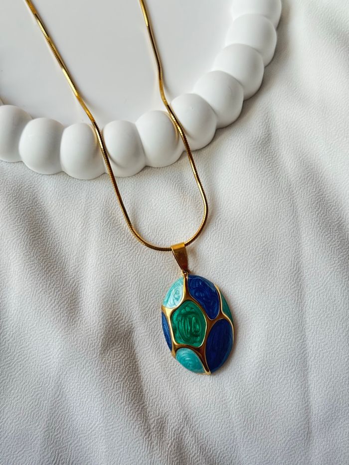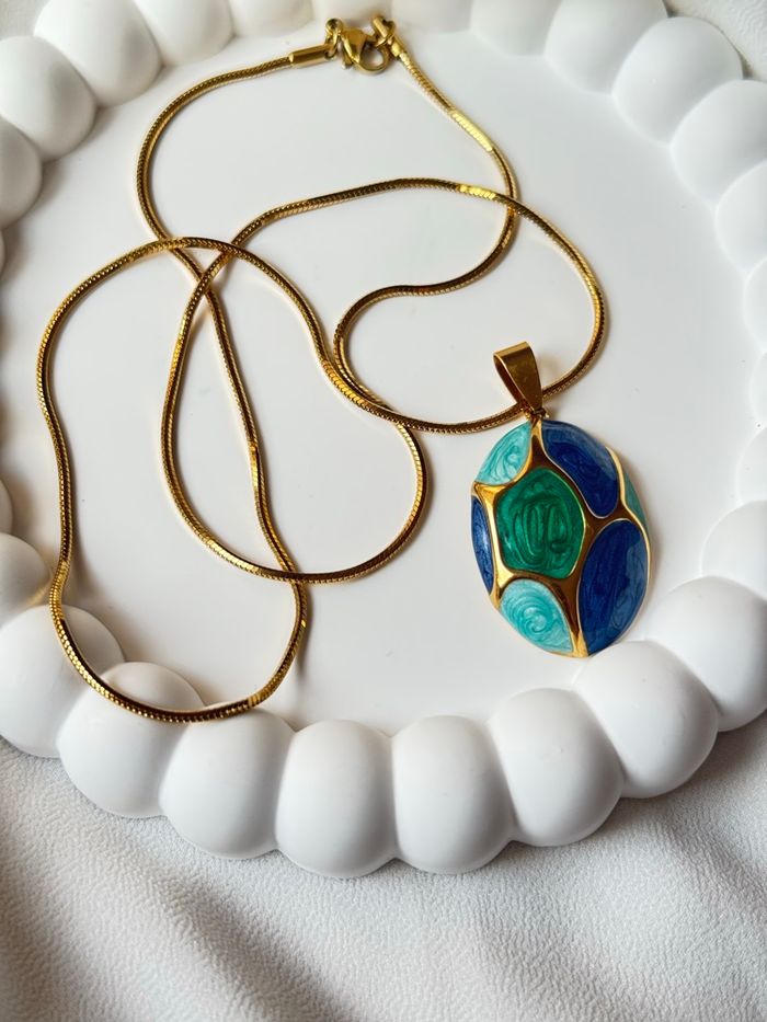 Collier vintage Émail Bleu & Vert - Acier Inoxydable Or