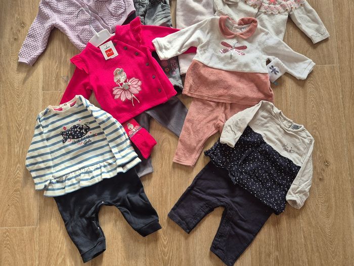 Lot Plusieurs vêtements ,ensemble fille taille 6 mois Il y a du neuf et certains ont été tres peu porte 2 pulls 3 Gilles 2 pantalons 4 ensemble et 2 paire de chaussettes neuves Plusieurs marque différentes Disney, du pareil au meme, orchestra obaidi super u week-end à la mer primark et colombia p
