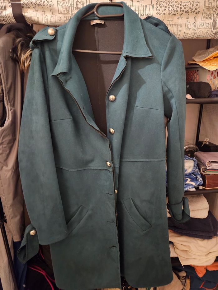 Veste legere de marque formule, matiere synthétique effet daim , idéal pour le printemps et automne , couleur vert bouteille taille 36