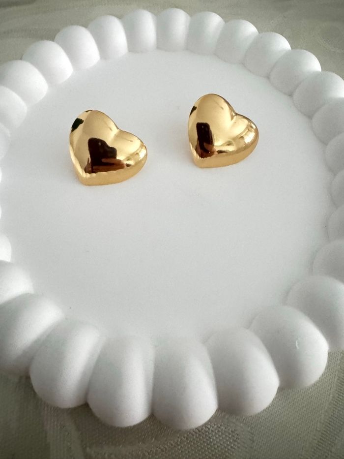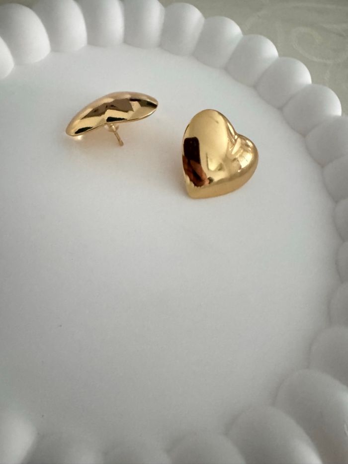 Boucles d'Oreilles Cœurs Bombés en Acier Inoxydable Doré – Style Vintage & Chic - photo numéro 3