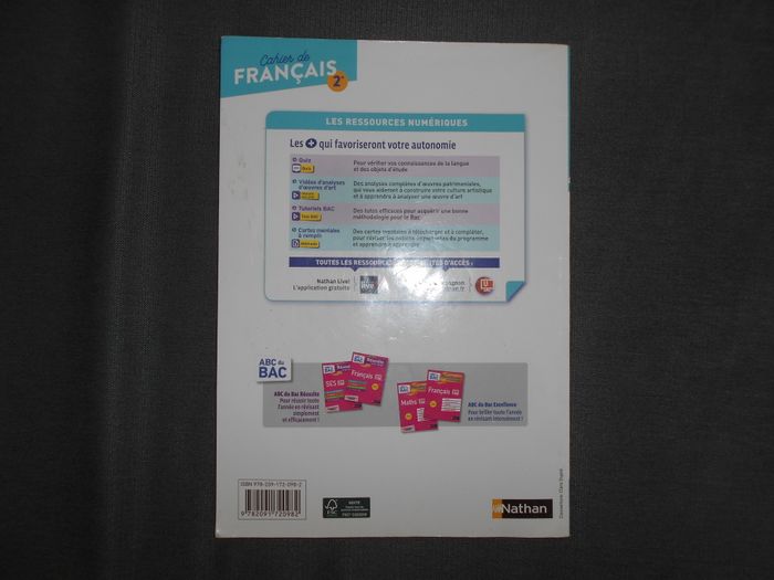 Vends ce livre: cahier de français, 2de (Nathan), en bon état.