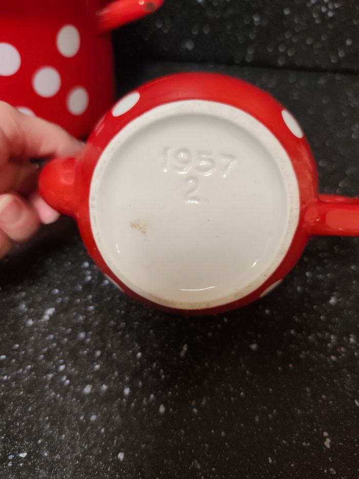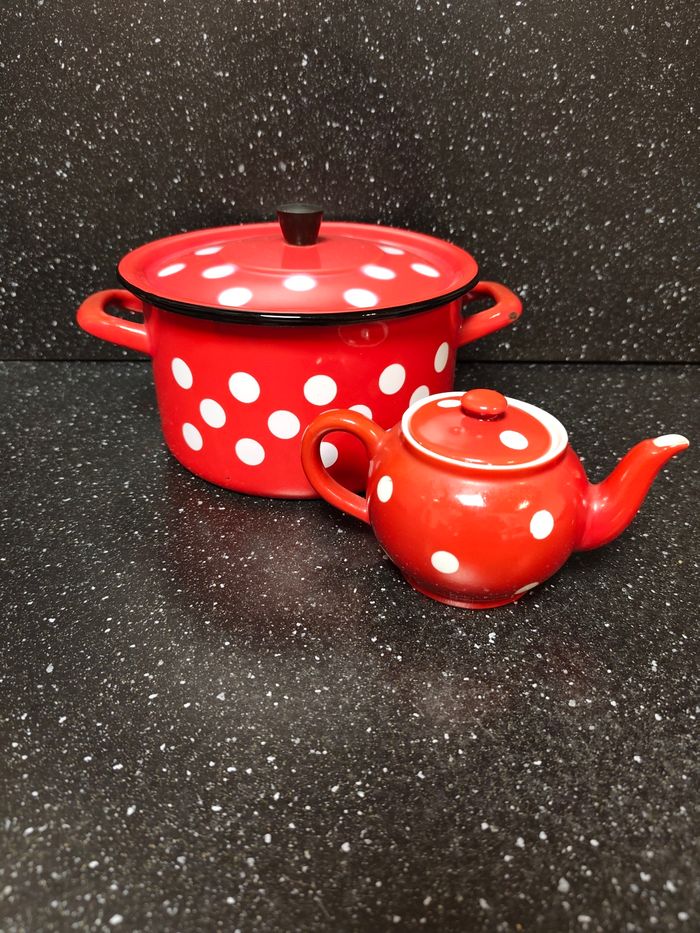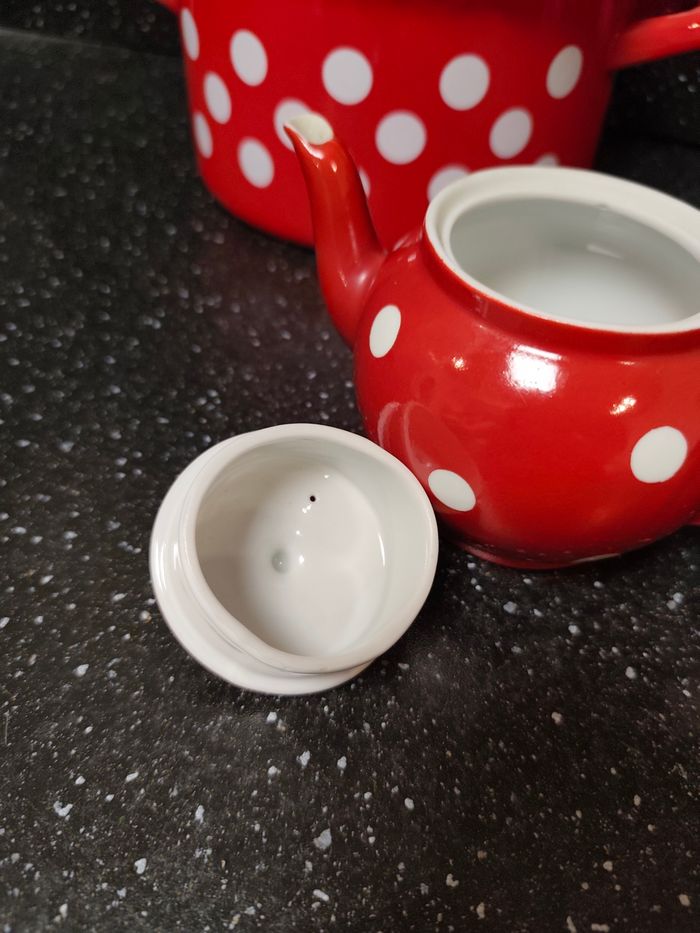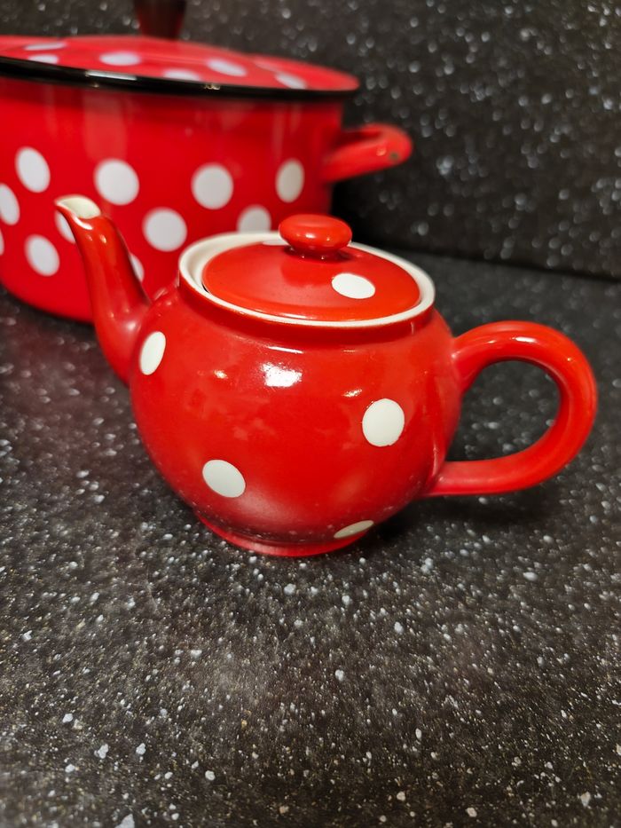 Ensemble marmite et théière polka rouge pois blanc Vintage deco 📌 Envoi rapide et soigné 📌 Maison non fumeur et sans animaux Il s'agit d'objets d'occasion ayant donc déjà servi, ils peuvent parfois présenter des traces d'usage et d'usure , merci de bien regarder les photos .