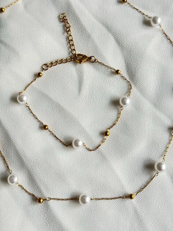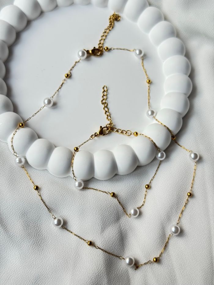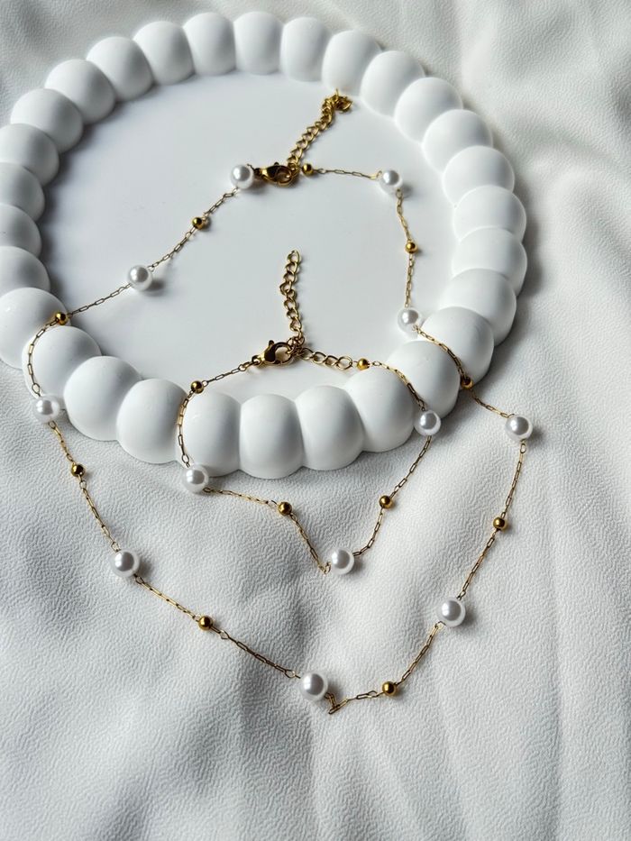 Parure Collier & Bracelet en Acier Inoxydable Doré – Perles Blanches - photo numéro 3