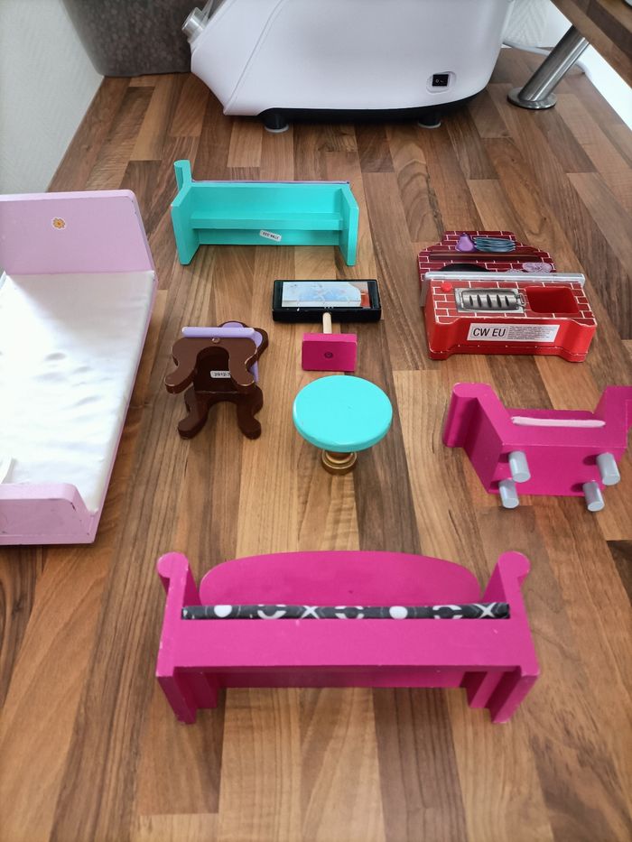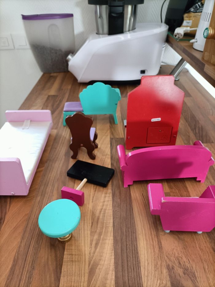 Lot de 8 meubles en bois pour poupées type barbie - photo numéro 5