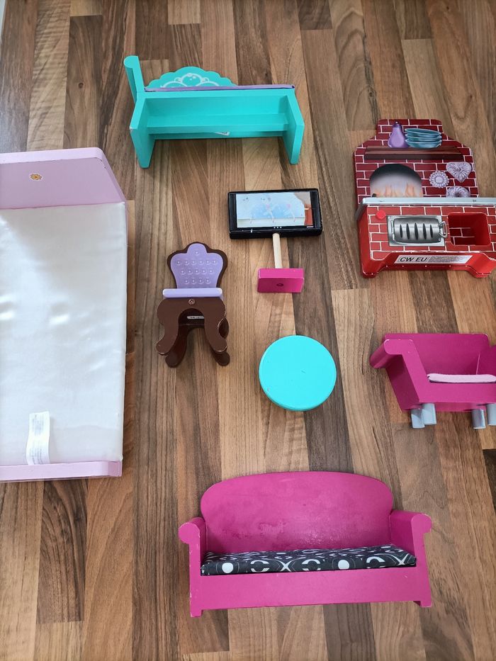 Lot de 8 meubles en bois pour poupées type barbie - photo numéro 2