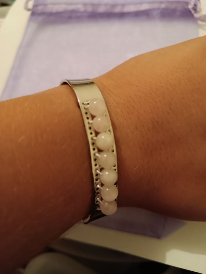 Bracelet quartz rose : Apports Bénéfiques sur le mental : - Pierre de l’amour de soi et des autres. - Redonne confiance en soi. - Apaise les chagrins. - Favorise l’endormissement. - Apaisante et sécurisante pour les enfants. - Amplifie la créativité et l’imagination. Apports Bénéfiques sur le physique : - Aiderait au bon fonctionnement de la circulation sanguine, du système hormonal. - Serait bénéfique sur la sexualité. Fb : kassy maline
