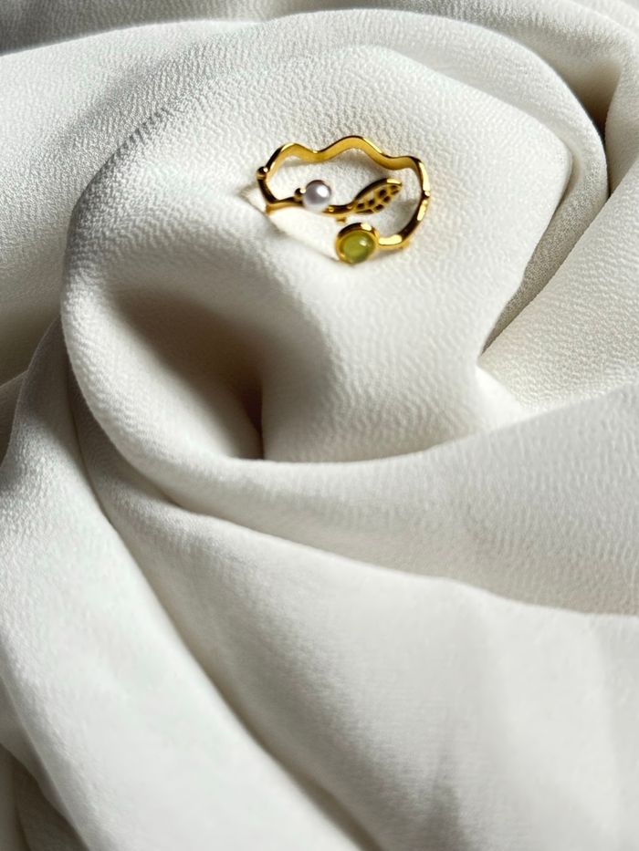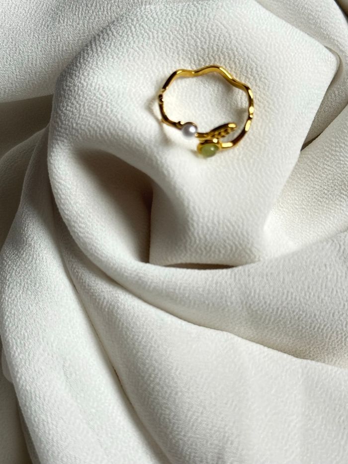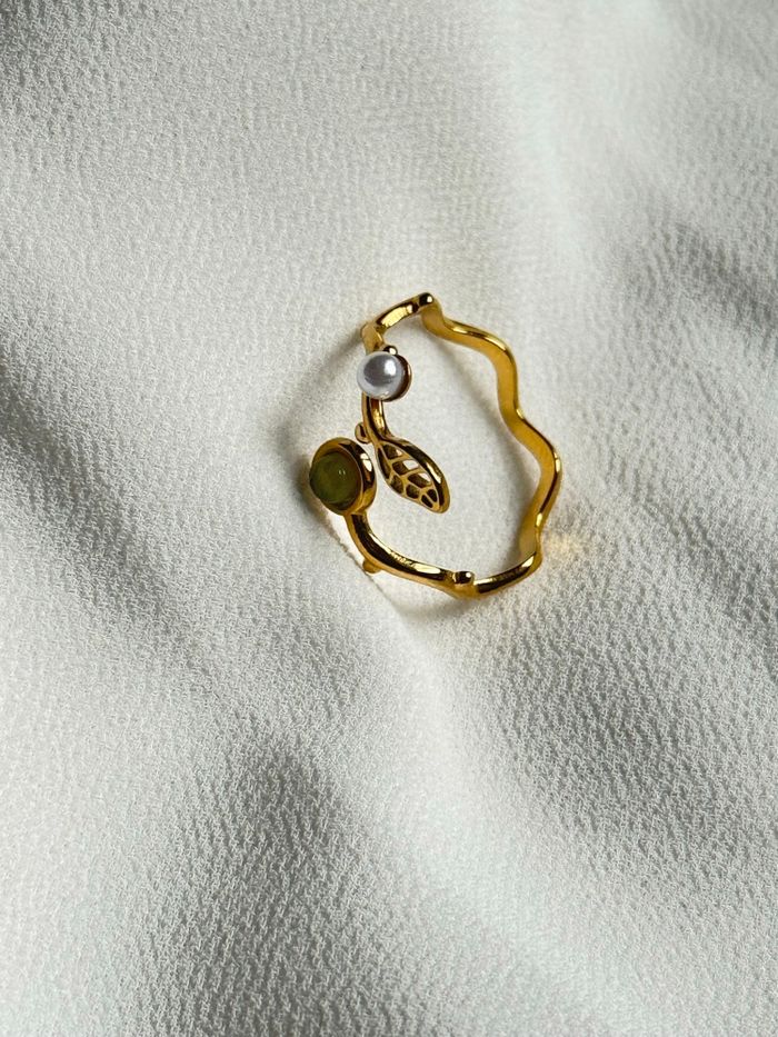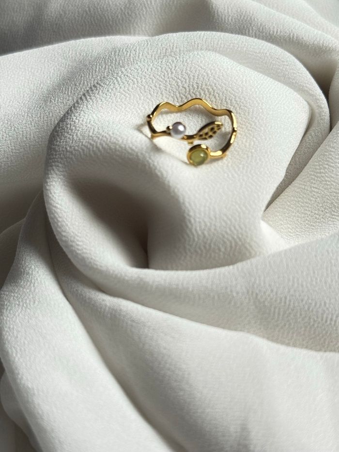 Ajoutez une touche de poésie à vos mains avec cette magnifique bague au design organique et aérien. Parfaite pour offrir ou pour se faire plaisir ! Pourquoi vous allez l'adorer : • Design Unique : Un anneau ondulé délicat orné d'une perle nacrée, d'une feuille ciselée et d'une pierre vert d'eau (type aventurine ou jade). • Qualité Durable : En acier inoxydable doré, elle résiste à l'eau, ne ternit pas et est hypoallergénique. • Taille Réglable : Plus besoin de connaître votre taille de doigt ! L'anneau s'ajuste facilement pour convenir à toutes les morphologies. • Style : Bohème chic, minimaliste et raffiné. État : jamais porté / Très bon état Envoi : Rapide et soigné
