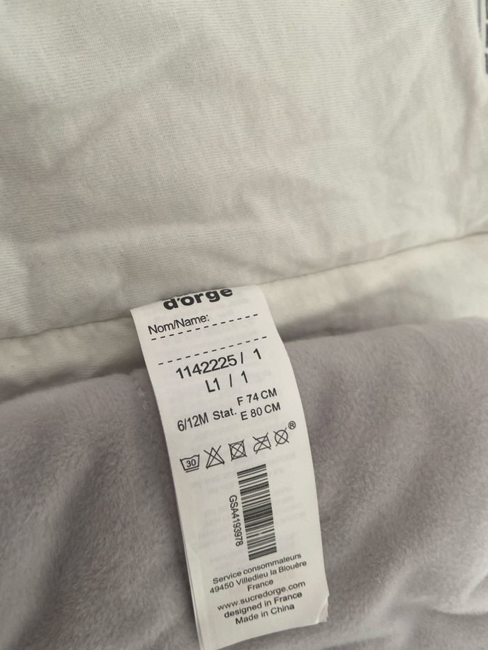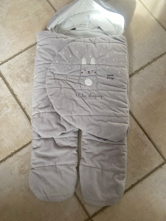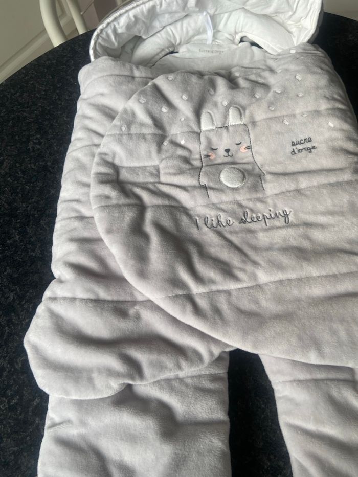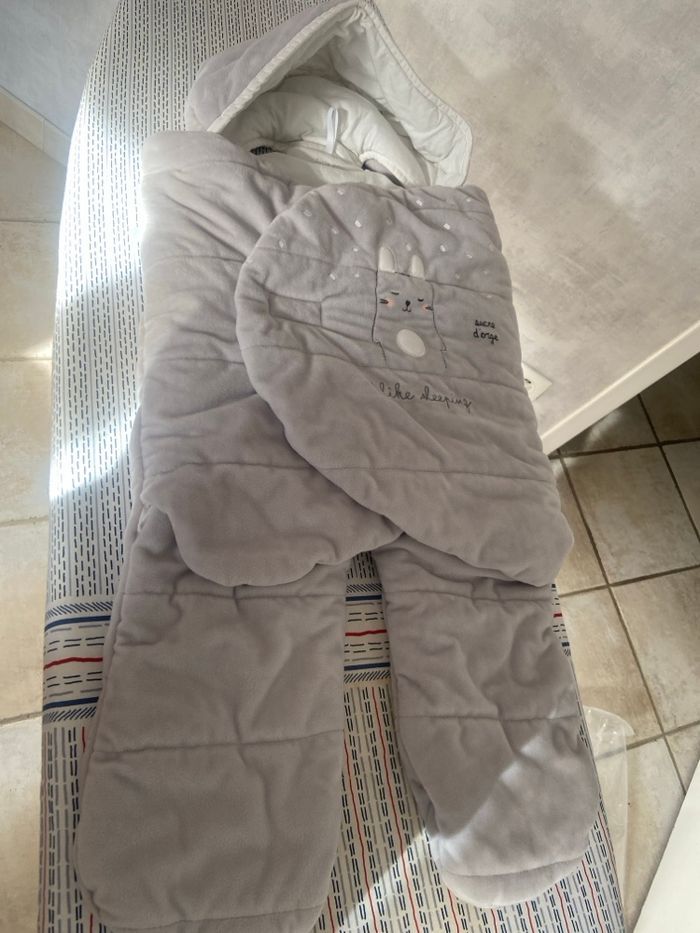 Nid d ange , marque sucre d orge,gris , 6/12mois 100%polyester, intérieur coton, très peu servi