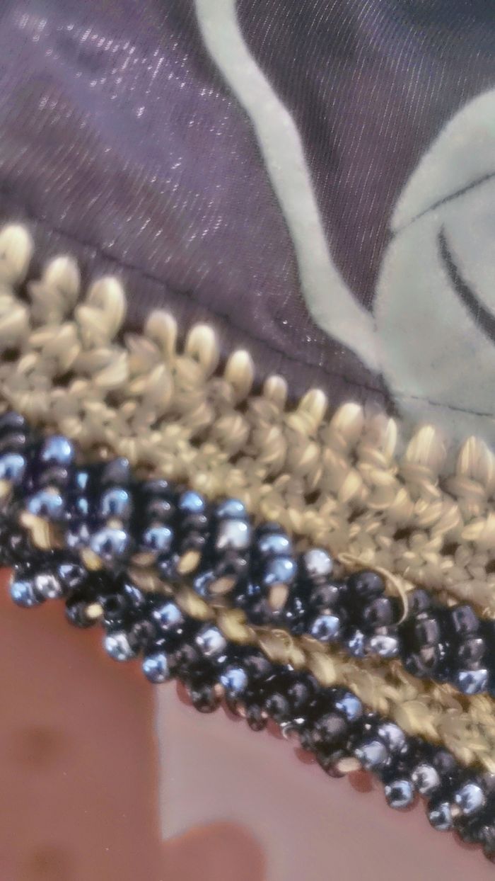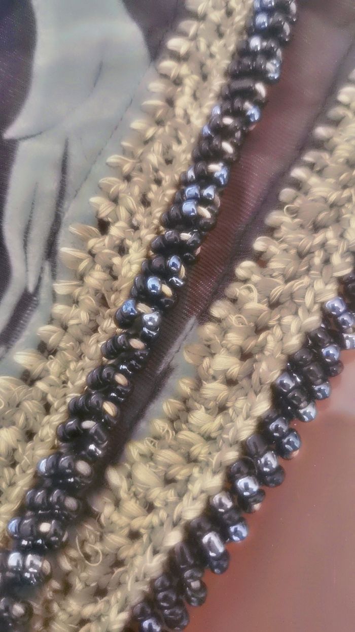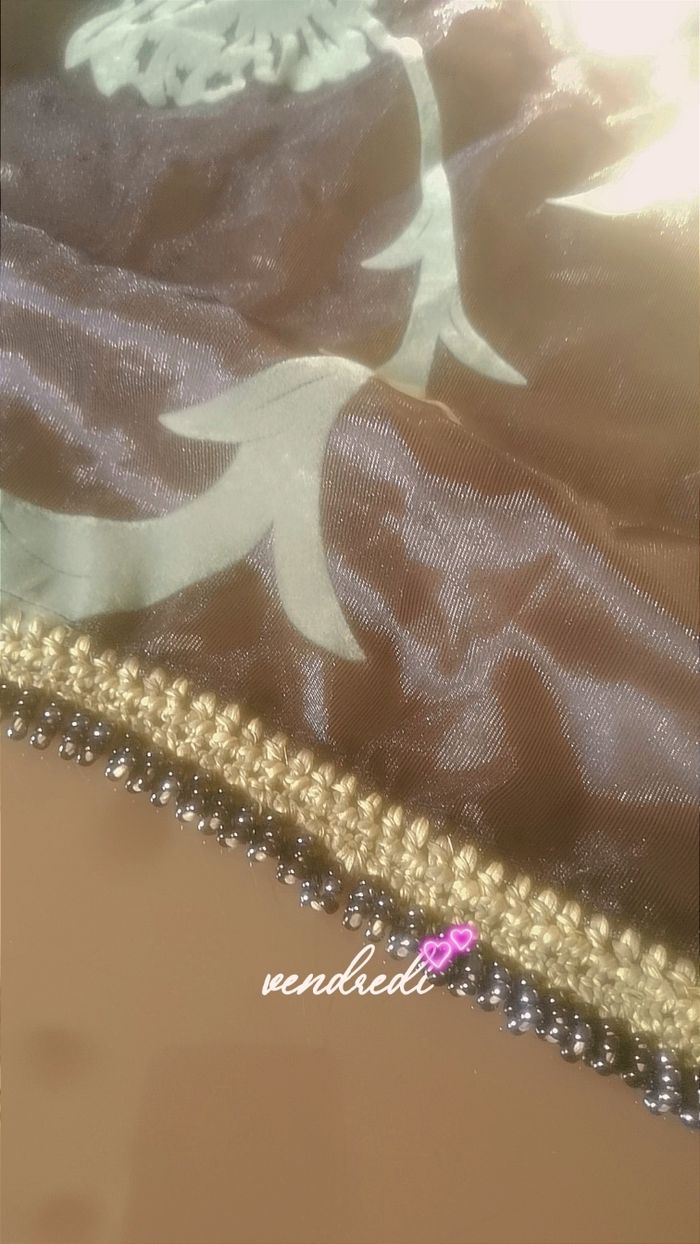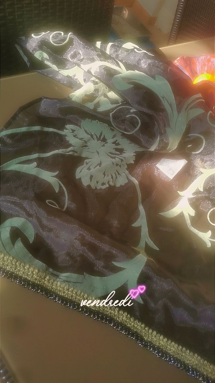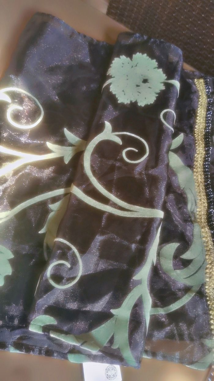 Foulard 100 %soie.. Noir /motif fleur velour vert Jamais portée.. Fait mains.. Étiquette.. Sans le prix..