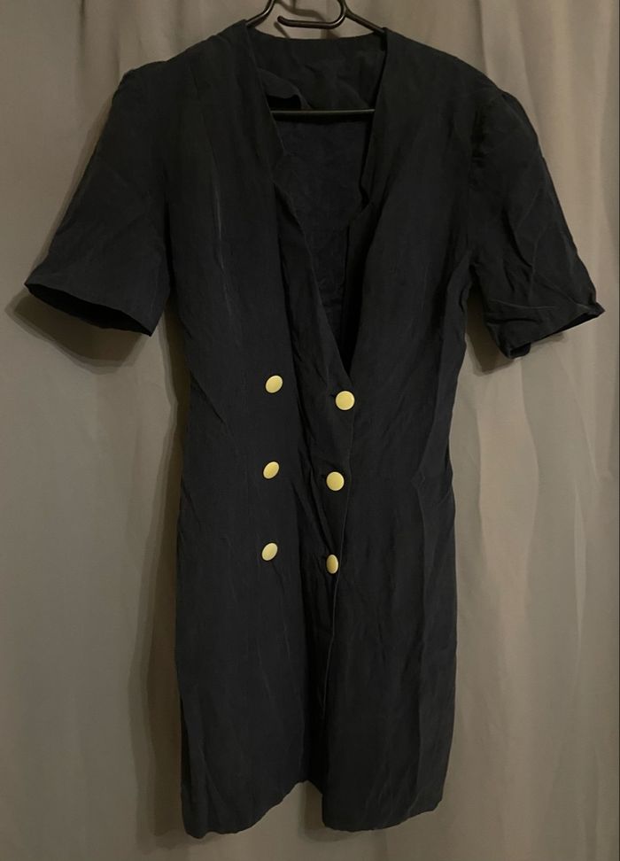 🚨Merci de bien lire l’annonce. Robe bleu marine avec boutons beiges,effet peau de pêche,en très bon état. Il n’y a pas d’étiquette de taille mais selon deux guides de l’IA,correspondrait à du 38/40. Mesure d’aisselle à aisselles:45,5cm=91 cm de tour de poitrine. 🎯Guides de tailles disponibles en dernières photos. 📌Il faut savoir que souvent les marques peuvent avoir un guide de taille qui diffère des unes aux autres donc Merci de vérifier les mesures de vos vêtements avec celui-ci car si ça ne convient pas je n’en serais pas responsable. Si vous avez le moindre doute, n’hésitez pas avant achat de me demander les mesures ou renseignements afin d’éviter tous désagréments. PS:Tous les vêtements sont lavés et repassés avant chaque envoi. 🔥🔥Réduction sur les lots activée🔥🔥 -5% de remise pour 2 articles. -10% de remise pour 3 articles. -20% de remise pour 5 articles.