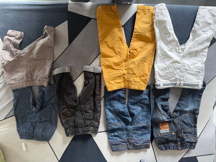 Vend pantalon bebe garçon 3-9 mois Je peux aussi a faire en lot si vous le souhaitez choisir a l’unité puis les choix que vous avez fait je le fait en lots J’ai plus de 200 vêtements de 0-18 mois 1€ pièces pour garçons n’hésitez pas a me demander plus de photos et plus de vêtements N’hésitez pas