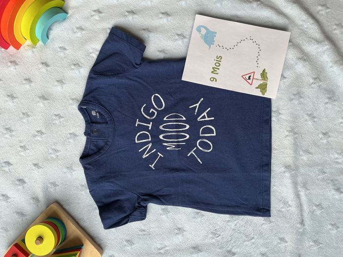 teeshirt manches courtes bleu inscription devant 9 mois la redoute - photo numéro 7
