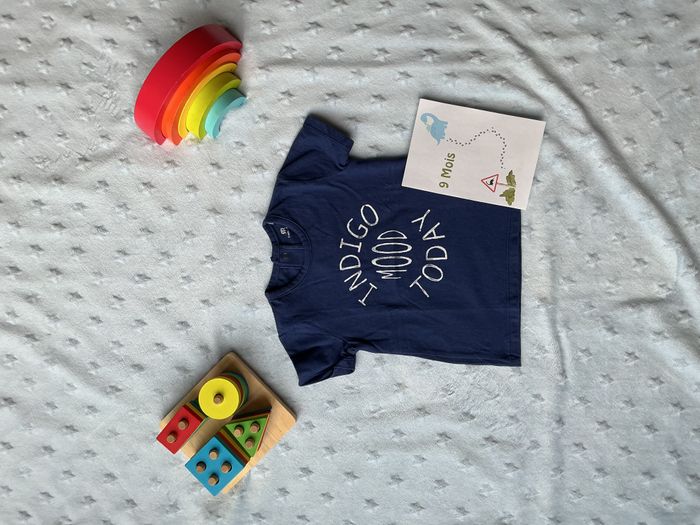 teeshirt manches courtes bleu inscription devant 9 mois la redoute - photo numéro 8