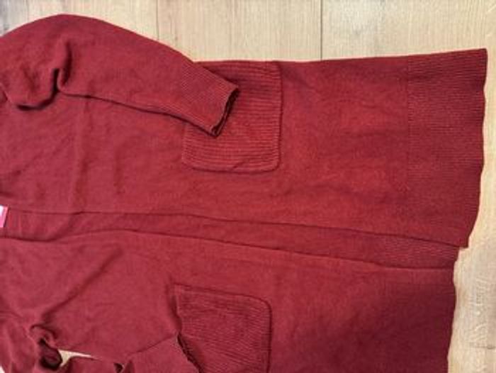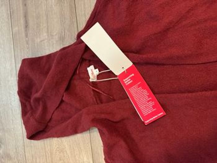 Neuf avec étiquette, taille M Coton et laine Couleur bordeaux Il est bien assemblé avec un t-shirt blanc et de jeans , il est léger et confortable