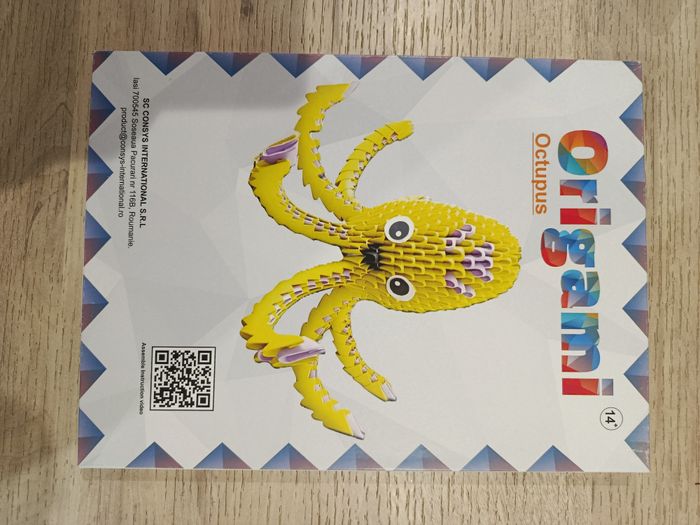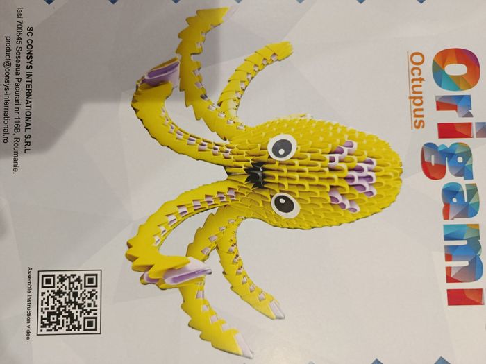 Kit créatif origami Octupus. Le QR code vous permet d'accéder à une vidéo tutoriel pour monter cet origami (vérifié). Idéal pour les dimanche pluvieux. A partir de 14 ans.