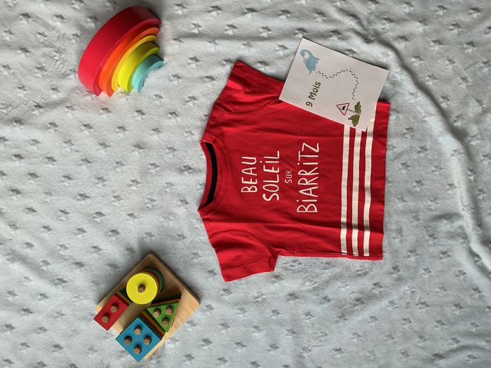teeshirt manches courtes rouge et blanc inscription devant 9 mois bout'chou - photo numéro 8
