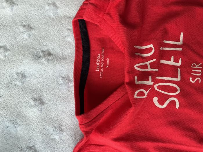 teeshirt manches courtes rouge et blanc inscription devant 9 mois bout'chou - photo numéro 7