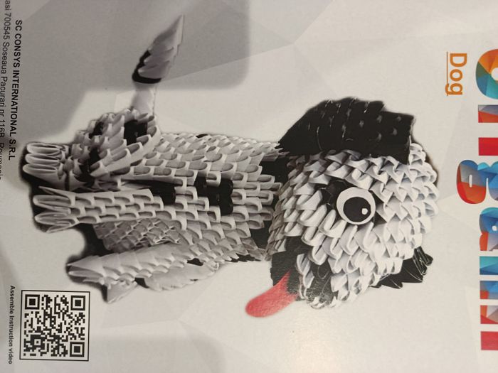 Kit créatif origami Chien. Le QR code vous permet d'accéder à une vidéo tutoriel pour monter cet origami (vérifié). Idéal pour les dimanche pluvieux. A partir de 14 ans.