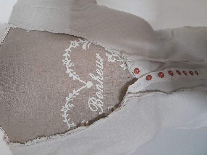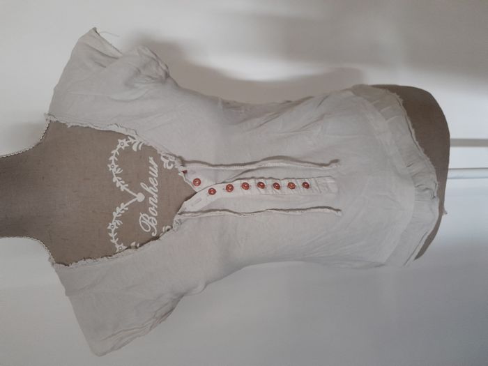 T-shirt, manche courte, attache bouton + nœud devant Longueur : 52cm Aiss / Aiss : 44cm Matière : 100 % Coton Marque : Fairly