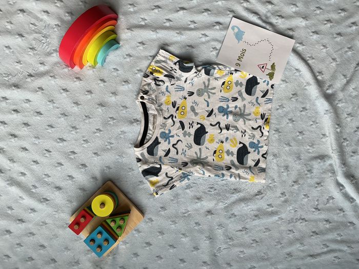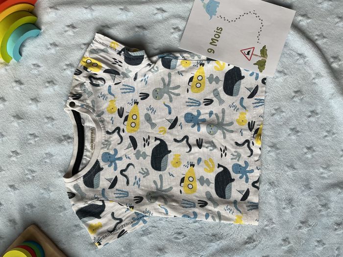 teeshirt manches courtes blanc à motifs bleu 9 mois orchestra