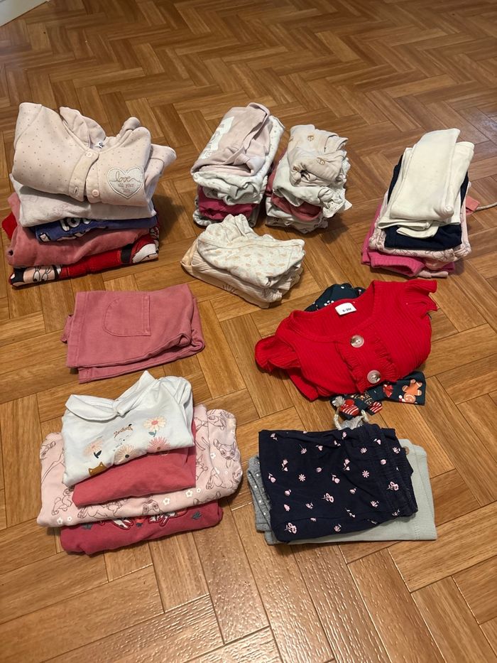 Contient des pyjamas, des body, des pantalons, une robe et des pulls