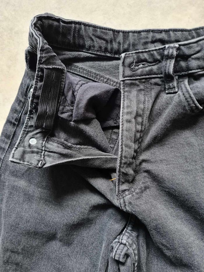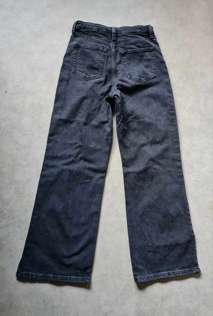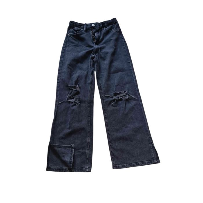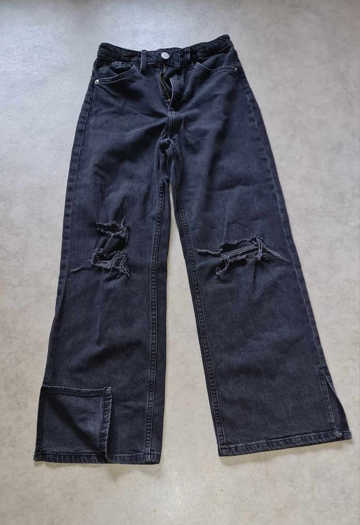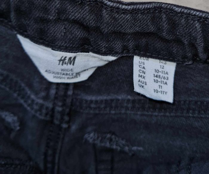 H&M Jean large troué (d'origine) Noir/gris foncé Ouverture bas de jambes Taille réglable élastique Longueur 90cm Largeur bas de pantalon 22cm Tour de taille maxi 62cm #lesplacardsenfolie10ans #lesplacardsenfolie11ans Ref23