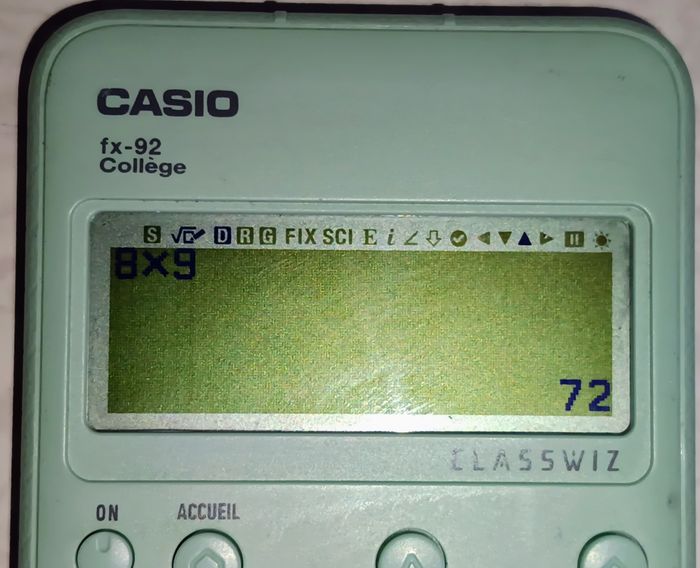 En très bon état général et fonctionnel La meilleure alliée pour le collège, autorisée au Brevet et à tous les examens du supérieur. Tout en français, développée avec des professeurs de mathématiques. Toute les fonctionnalités nécessaires pour le collège. Très facile à utiliser. Piles incluses