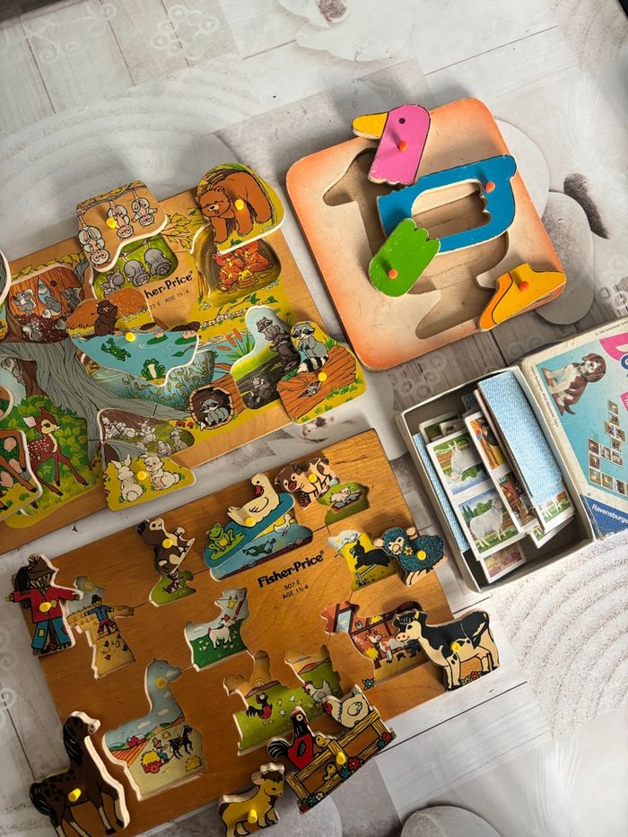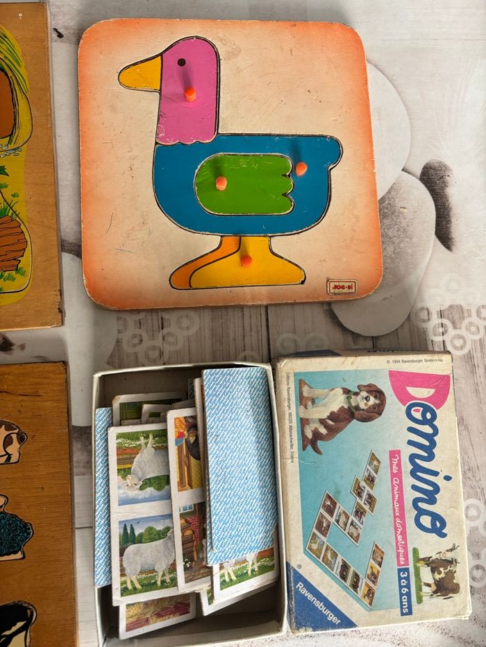 Lot de 3 puzzles en bois + un jeu domino vintage ! Bon état traces d’usures