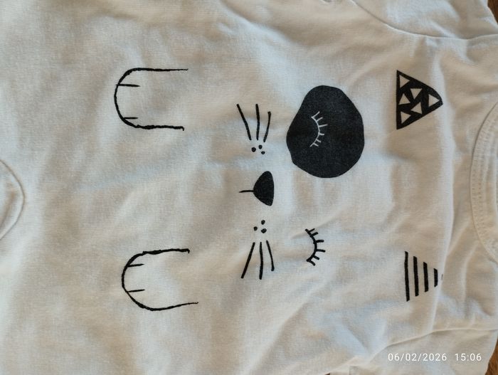 Deux pièces Un blanc et noir ligné Un blanc motif chat Excellent état Taille naissance Sans marque